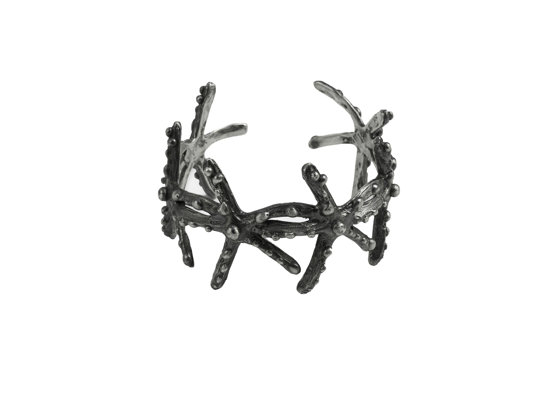 Crafted and oxidized for a shadowed, textured finish, this sculptural cuff is formed from starfish joined hand-in-hand — a tribute to connection, sisterhood, and presence. Worn as one continuous piece, it is bold, fluid, and grounded in meaning.