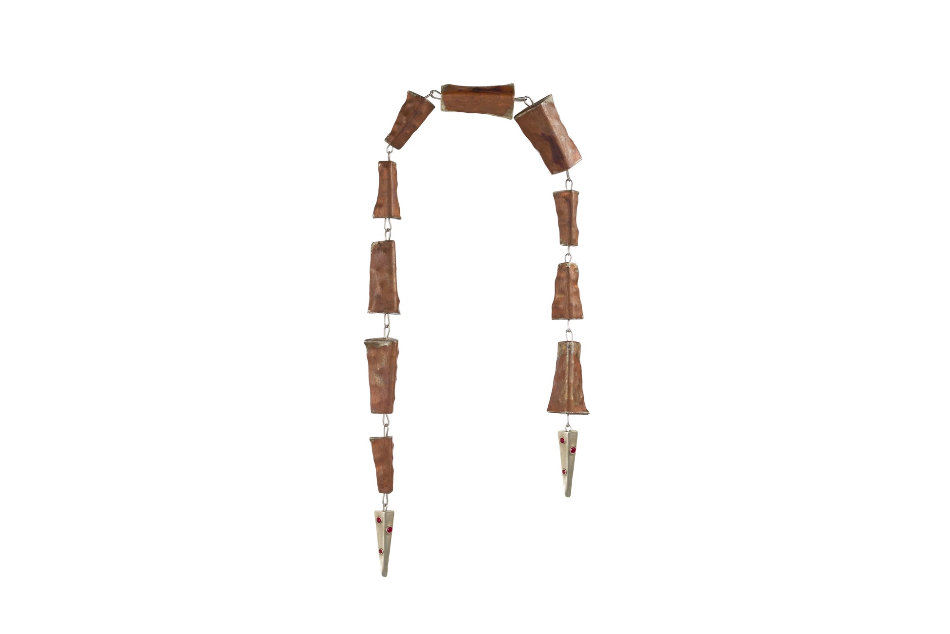 Made with copper for the body and silver for the joints and tips — each tip adorned with three stones — this piece is more than jewelry; it’s a sculpture in motion. Connected by custom-engineered links, every limb can be released, reassembled, and worn as a necklace, bracelet, earrings, or brooch. One body. Infinite expressions. A testament to transformation, modularity, and the poetry of form.